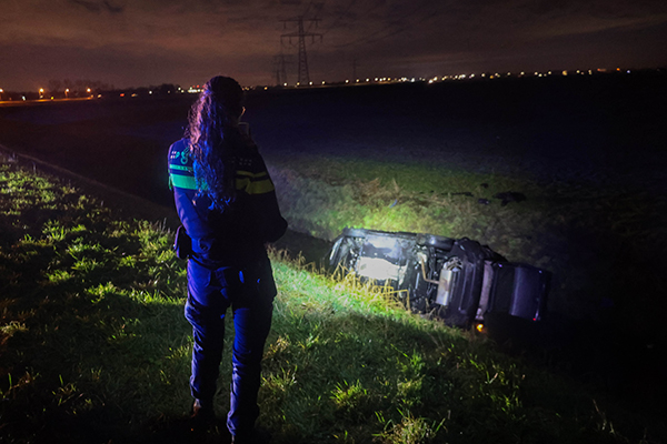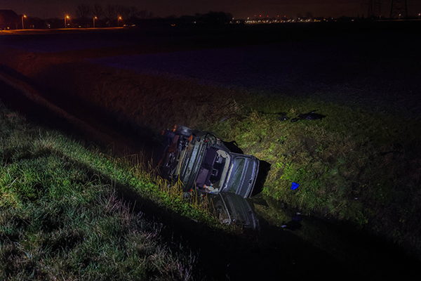 Daarnaast werd een team droneverkenning ingezet om de omgeving te doorzoeken. Bij aankomst bleek nl dat er geen bestuurder en of inzittenden in het voertuig aanwezig waren. Er is een zoekactie gestart naar de mogelijke bestuurder/ inzittende(n). In een nabijgelegen weiland zijn persoonlijke spullen en kleding aangetroffen die vermoedelijk uit de auto afkomstig zijn.