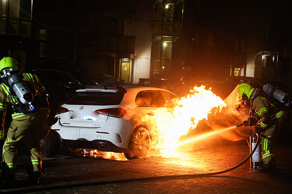 Bij aankomst trof de brandweer een Mercedes aan die al grotendeels in lichterlaaie stond. De brandweer wist het vuur snel onder controle te krijgen, maar het voertuig moet als verloren worden beschouwd.