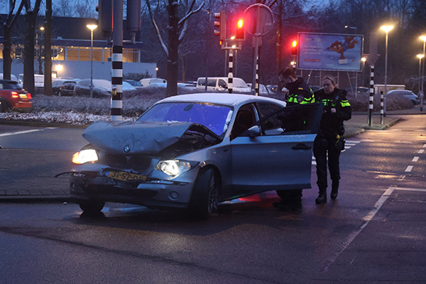 Twee auto’s botsten tegen elkaar. Eén voertuig liep vooral schade op aan de bumper, het andere aan de achterkant.