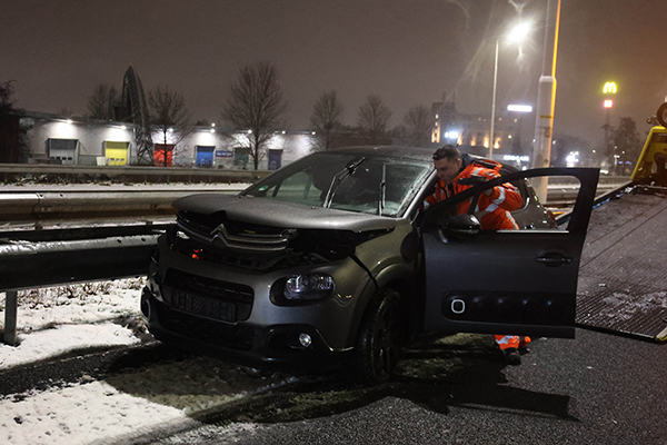 Een automobilist verloor de macht over het stuur, waarna het voertuig draaide en tegen de vangrail tot stilstand kwam.