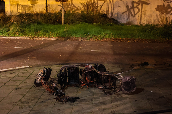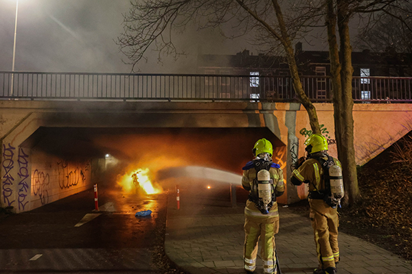 Omstreeks 02.30 uur in de nacht van donderdag op vrijdag is er een elektrische scooter volledig in brand gevlogen onder de fietstunnel aan de Hogenbanweg, op de grens tussen Schiedam en Rotterdam.De politie en de brandweer kwamen met spoed ter plaatse, maar konden niet voorkomen dat het voertuig volledig uitbrandde.